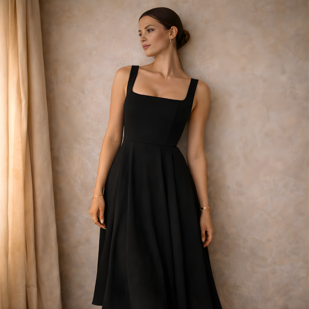 This square neck sleeveless dress is designed with a clean structured fit that enhances the natural shape while maintaining a refined silhouette. The minimalist neckline and tailored form create a polished look, making it ideal for both elevated daywear and evening styling. Crafted for comfort and confidence, it delivers a balance of structure and effortless wear.
