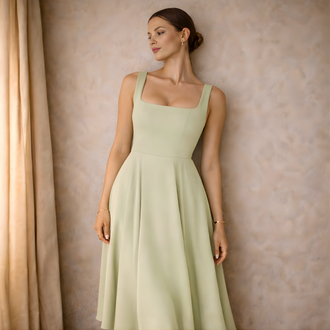 Square Neck Sleeveless Dress Structured Fit