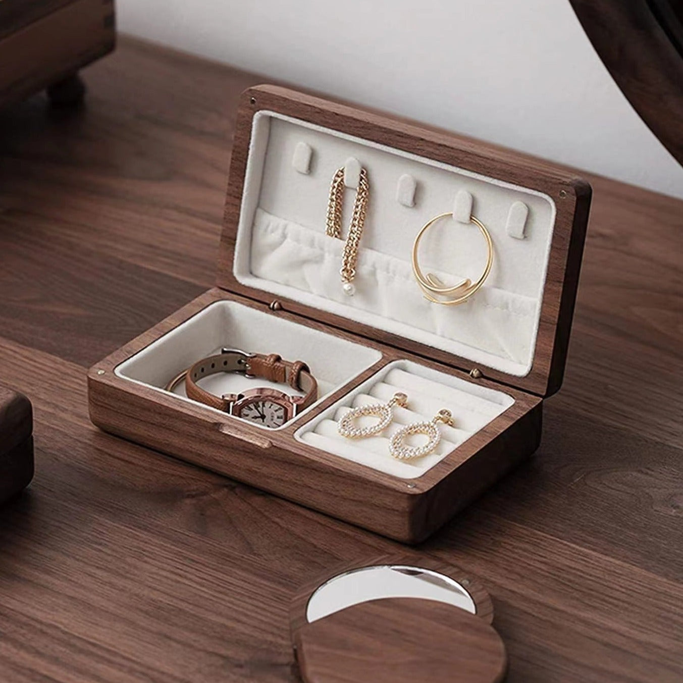 - Soft fabric-lined compartments – Protects rings, earrings, necklaces, and more.