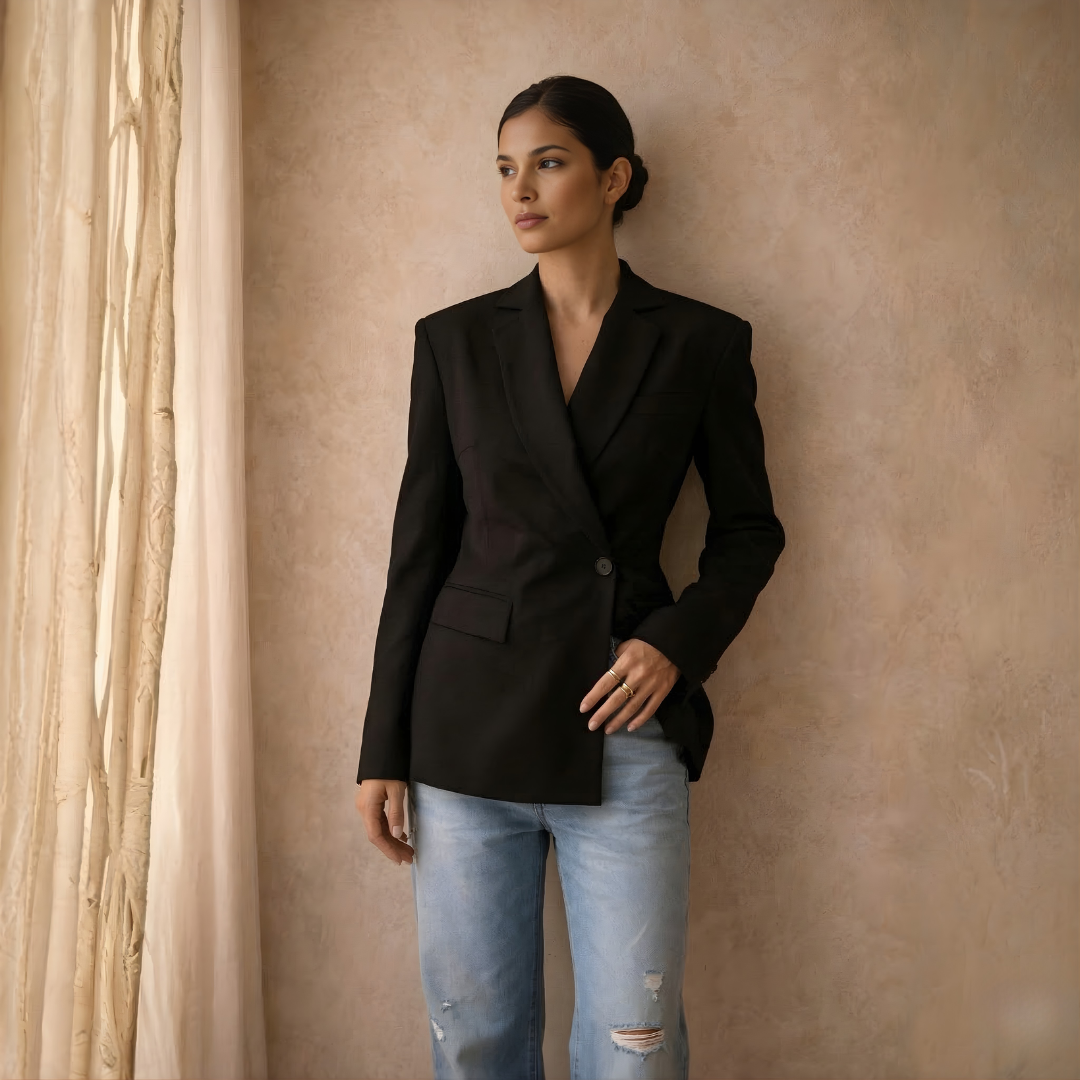 Perfect for city evenings, stylish events, or refined daywear, it pairs effortlessly with tailored trousers or a sleek skirt, creating a look that feels confident, elegant, and timelessly chic.